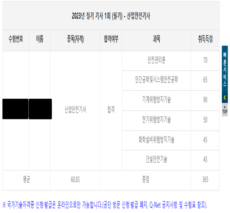 3. 실제 점수 인증 (2023년 1회 차)