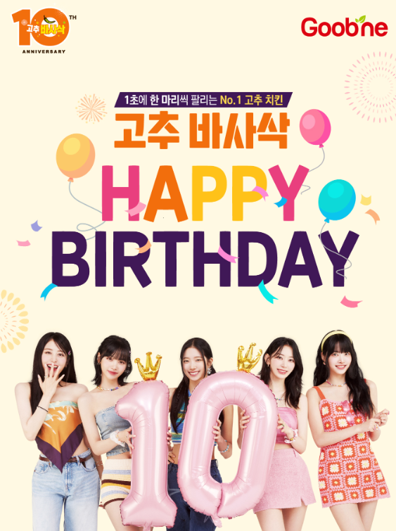 굽네치킨에서 1초에 한 마리씩 팔린다고 하는 고추바사삭을 10주년 기념으로