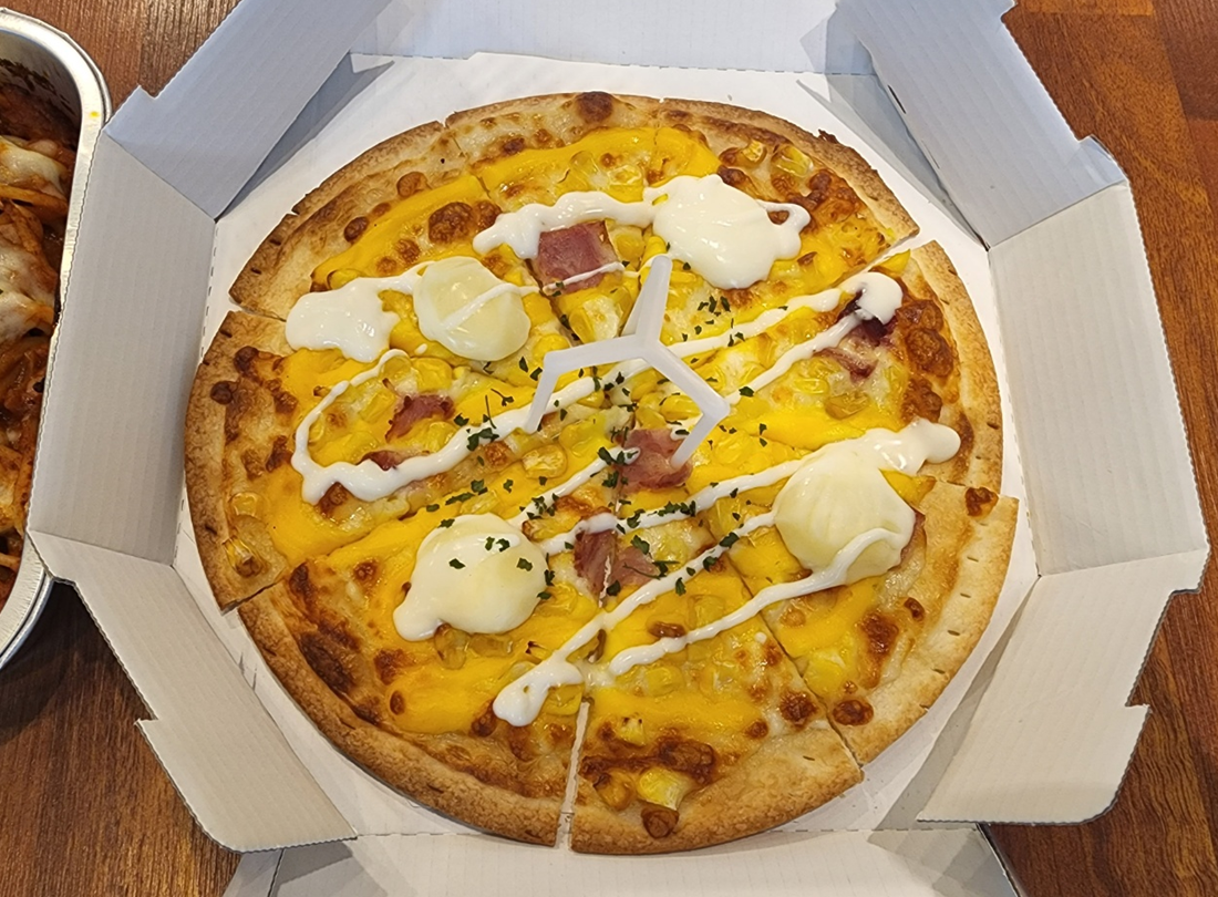 피자는 달콤하고 고소한 콘무스와 톡톡 터지는 옥수수 알갱이가 치즈와 어우러지는 씬크러스트 피자이고, 파스타는 다진 소고기를 넣은 깊은 맛의 토마토소스에 모짜렐라 치즈를 더해 풍미 가득한 파스타입니다.