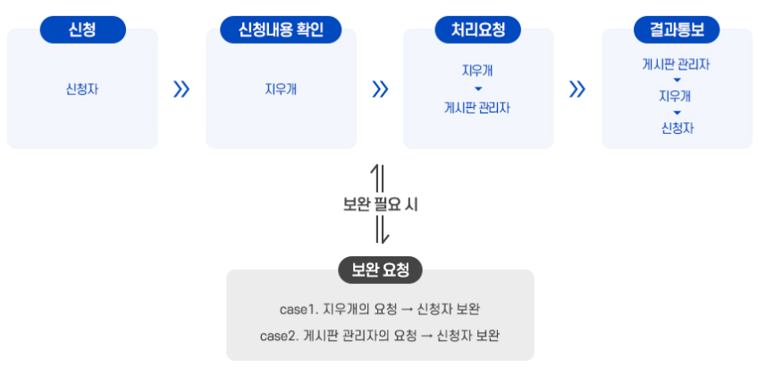 신청 처리 과정 중 지우개 서비스 담당자 및 게시판 관리자는 서비스 신청자에게 입증자료를 요구할 수 있습니다.