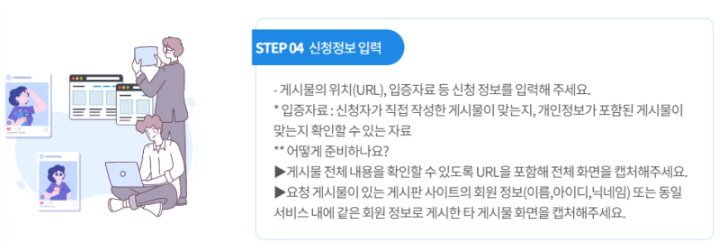 * 게시물 위치(URL), 입증자료 등 신청정보 입력