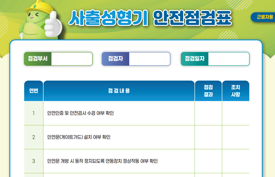 사출성형기 안전점검표 맨 하단🔽🔽🔽